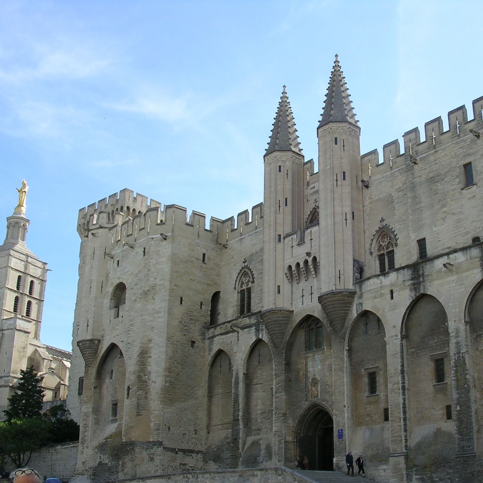 Le voyage dans le temps se prolonge vers le centre avec les monuments** tels que la cathédrale de Notre-Dame-des-Doms, de style roman provençal du 12°, 14° et 17°s ; le Petit Palais, ancienne résidence des archevêques d'Avignon du 14°s, et bien sûr le Palais des Papes du 14°s et symbole de la grandeur de l'Eglise.