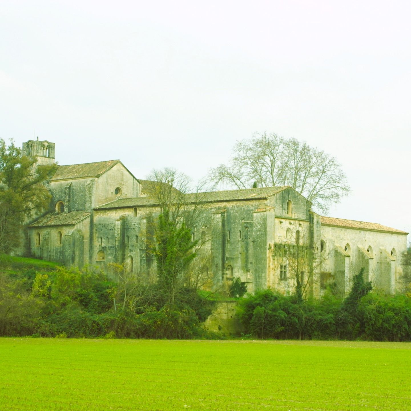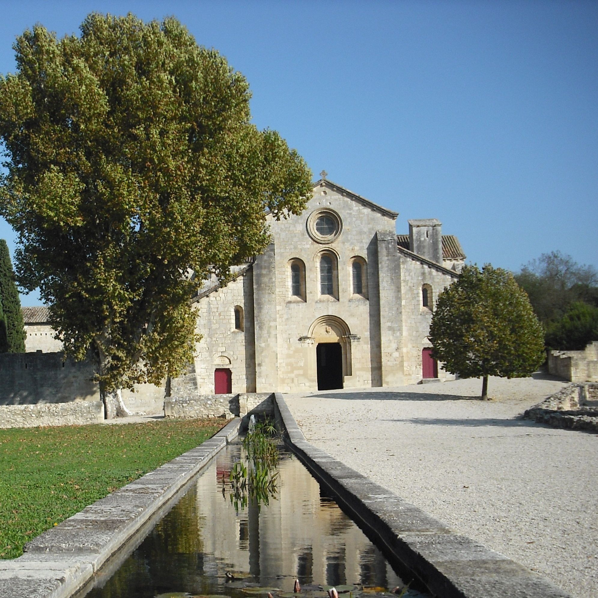 De la route à l'abbaye, en passant par le lavoir, les sentiers alentours nous plongent dans les raisons qui ont poussées les cisterciens à s'installer ici en 1144 : anciens marécages à roseaux de la Durance, éloignés et peu accessibles par toute sorte d'individu.