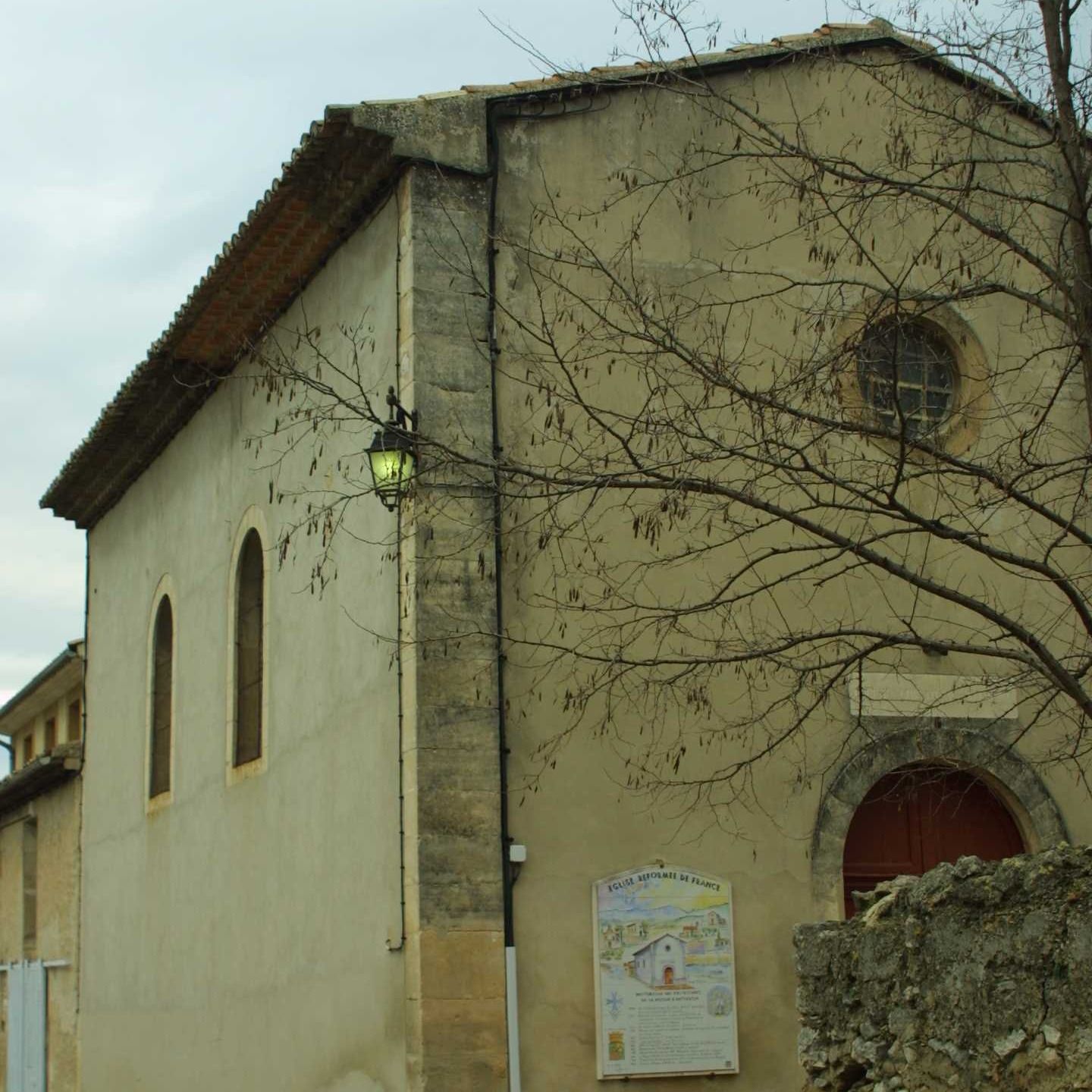 La visite continue vers le centre de ce village en damier avec son Château, son église puis enfin son temple protestant, vestige de cette histoire particulière en Provence. Ce gros bourg est situé en face de la principale terre d’exil de ce groupe religieux excommunié en 1215 (Le Luberon). c'est pour cela que sera évoquée l'histoire des massacres de 1545, avec l'exemple du village de Cabrières d’Aigues dont ses habitants étaient les parents des rocassiers.